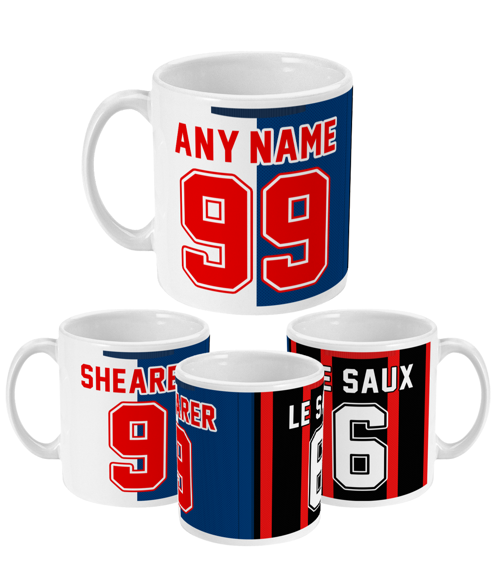 Show support for your favourite players with our custom personalised football shirt link-up mugs. Perfect for enjoying the game with your feet up at home or supporting your team loud and proud in the office at work.