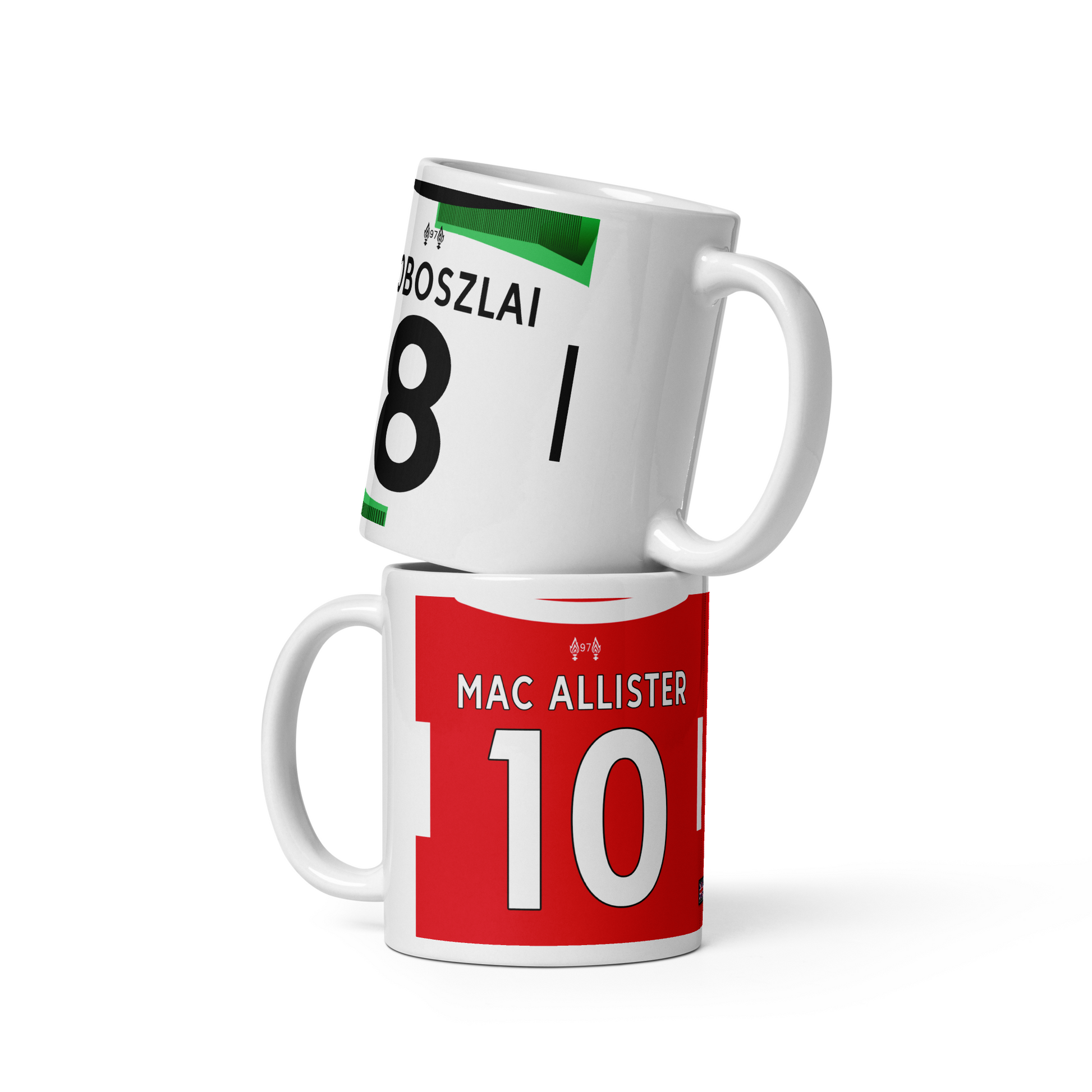 Upgrade your morning coffee routine with our personalized Liverpool FC mug! This 11 ounce ceramic mug showcases the iconic Liverpool FC home and away shirt design, making it a must-have for any true fan. Add a personal touch by customizing the mug with your chosen name and number, making it a unique and thoughtful gift for yourself or a loved one.