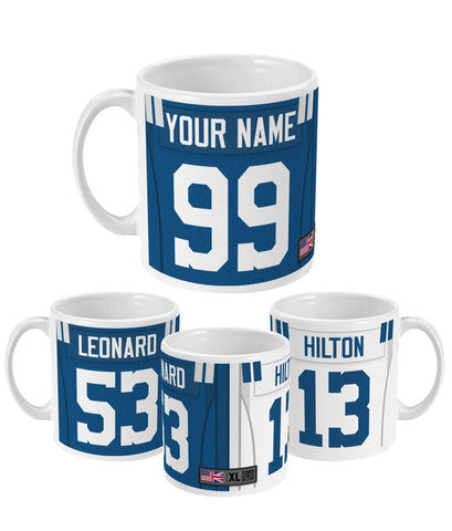 Show support for your favourite US American Football talents with our Indianapolis custom personalised link up mug. Perfect for enjoying the game with your feet up at home or repping your team loud and proud in the office at work.