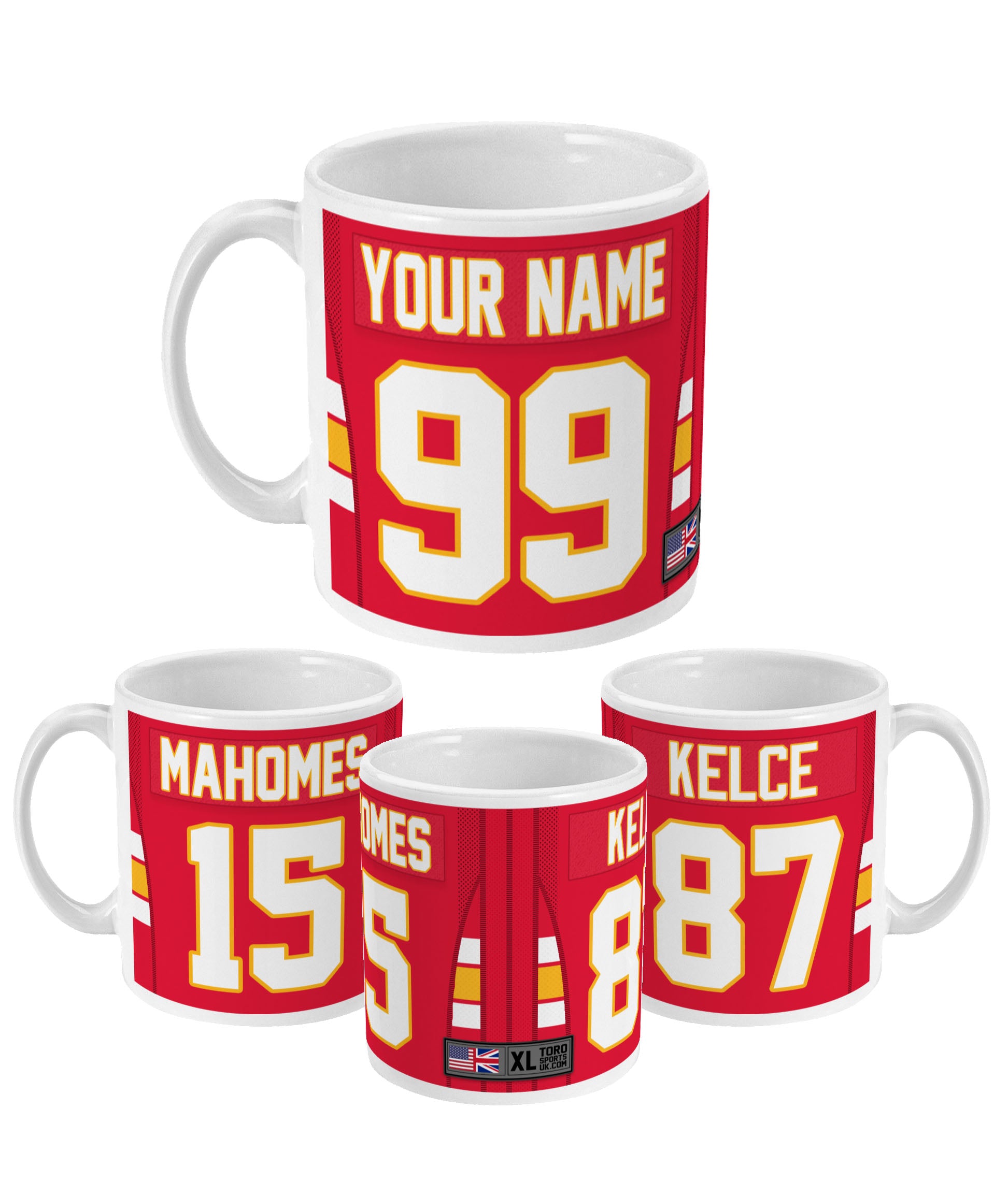Show support for your favourite US American Football talents with our Kansas City custom personalised link up mug. Perfect for enjoying the game with your feet up at home or repping your team loud and proud in the office at work.