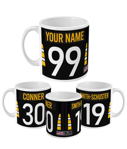 Show support for your favourite US American Football talents with our Pittsburgh custom personalised link up mug. Perfect for enjoying the game with your feet up at home or repping your team loud and proud in the office at work.