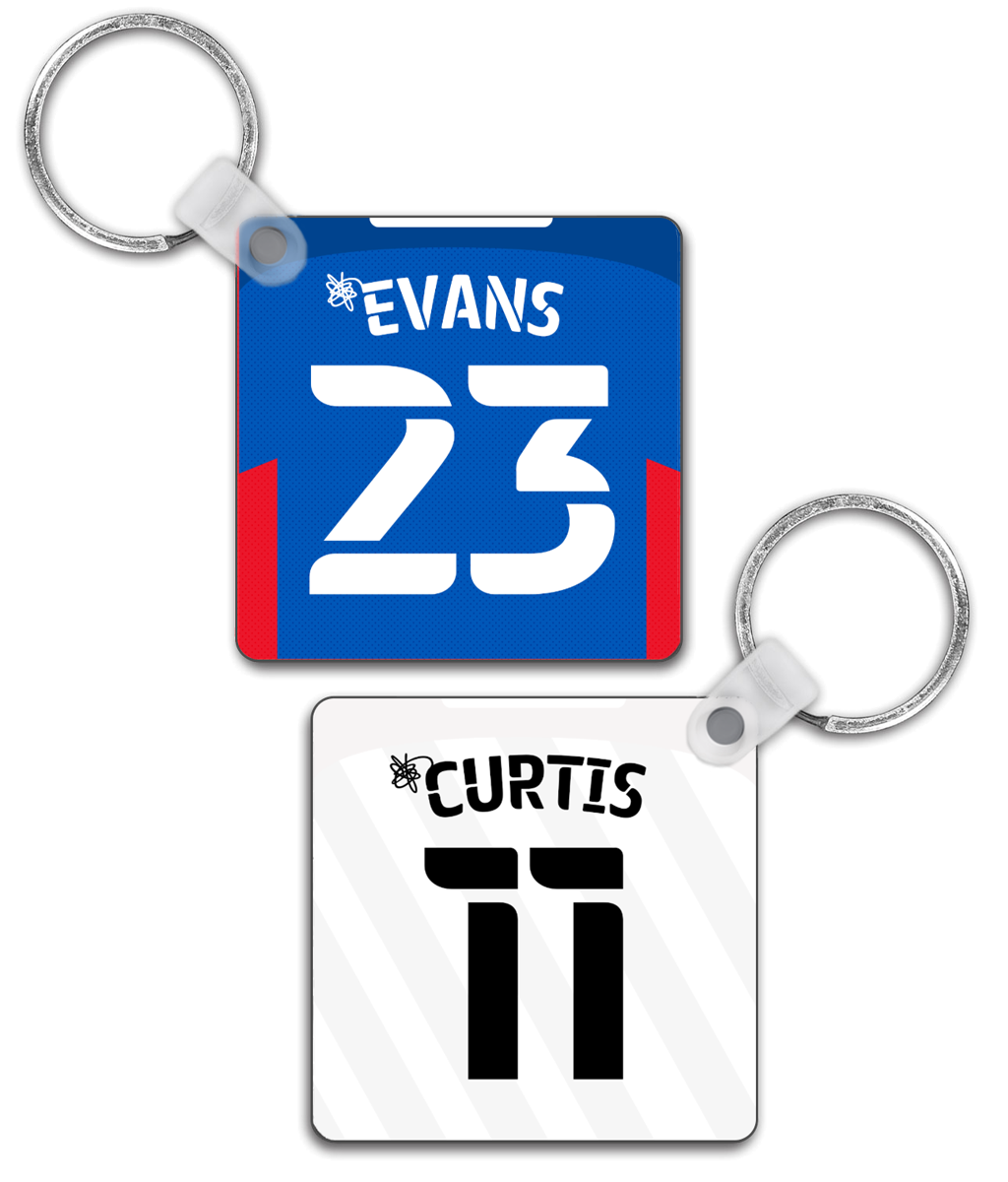Show support for your favourite talents wherever you go with our custom personalised football shirt keyrings. Design - Double sided with home and away on either side - High quality glossy finish. - Measures approximately 50mm x 50mm - Square shaped wooden keyring with a strong plastic fixer connecting to a metal split ring in one corner Colour Information Our product artwork & preview images are designed using the team colours and are the closest achievable representation of the physical print. Important Information If you would like free personalisation please ensure you include the name(s) and number(s) you want us to produce for you in the box above. If you submit your order without filling in the home and away shirt boxes we will assume you're happy to receive the two players on the stock image. |
